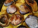 Βαζουμε τα λαχανικά στο ταψί, σε στρώσεις. Τις πατάτες, τις μισές μελιτζάνες, τα κρεμμύδια και τις υπόλοιπες μελιτζάνες.