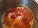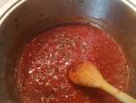 Στην κατσαρόλα που ετοιμάσαμε τα κρεμμύδια προσθέτουμε λίγο ελαιόλαδο, βάζουμε τον πελτέ, τηγανίζουμε για λίγο και σβήνουμε με το κρασί. Προσθέτουμε τη σάλτσα και τα μπαχαρικά και βράζουμε μέχρι να γίνει.