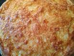 Ετοιμάζουμε τη μπεσαμέλ σύμφωνα με τις οδηγίες στο κουτί. (Αν δεν θέλετε να κάνετε έτοιμη κάντε αυτήν που έχω στο παστίτσιο της μαμάς μου.) Τη ρίχνουμε πάνω από τον κιμά. Από πάνω σκορπίζουμε κομματάκια μαργαρίνης και το τριμμένο τυρί.